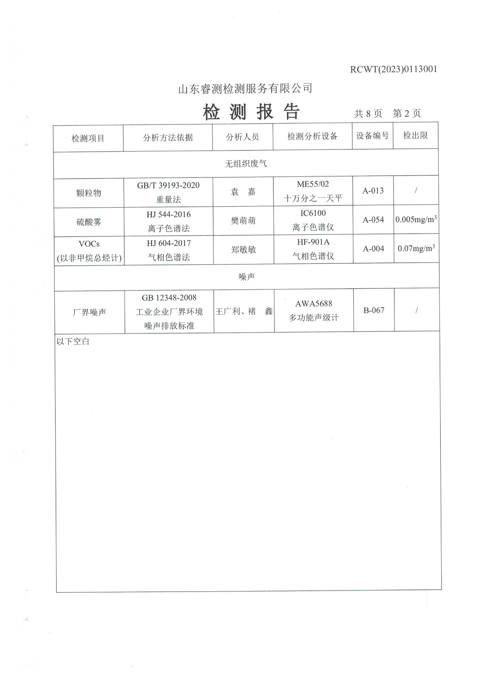 2023年第1季度檢測報(bào)告