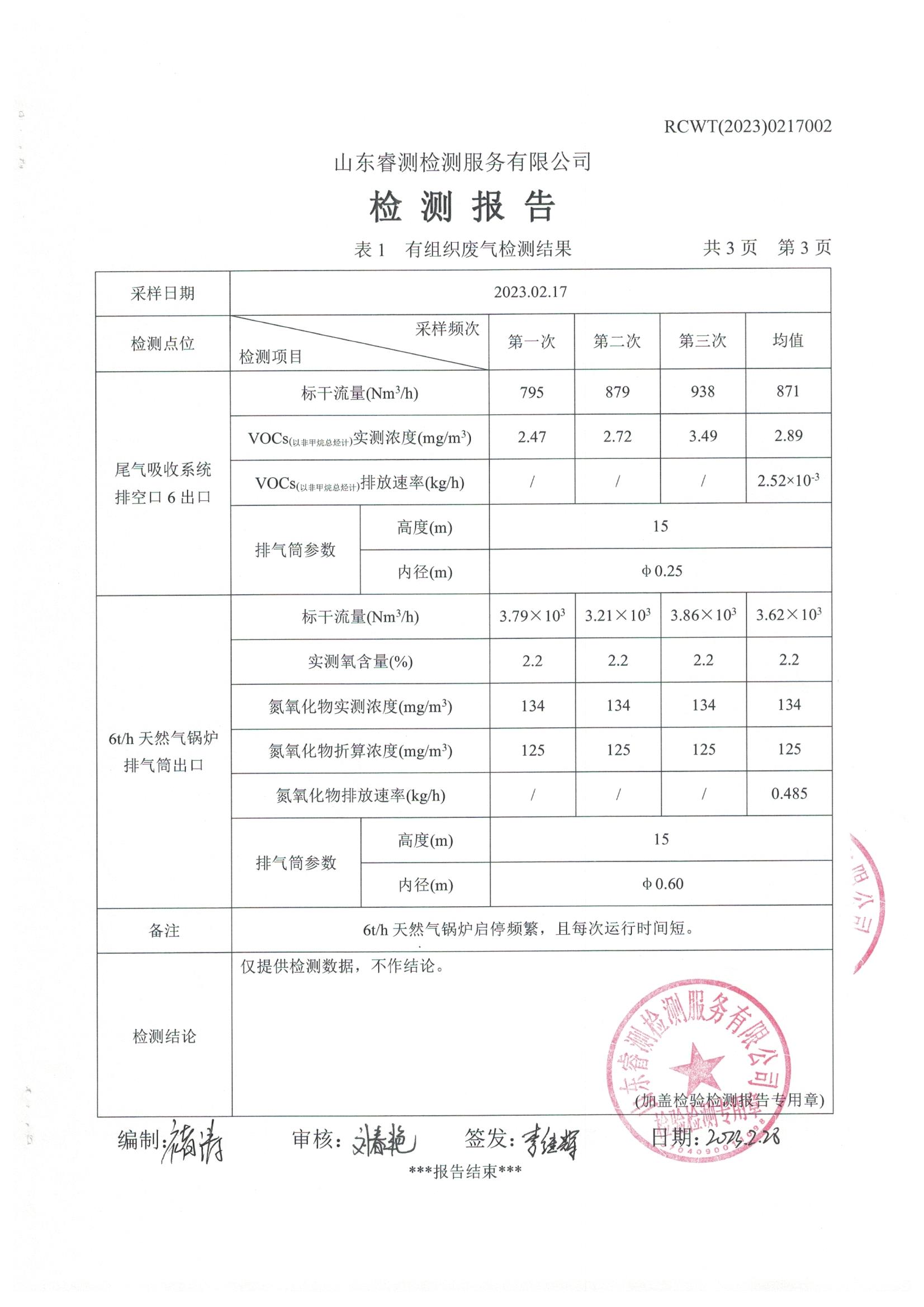 2023年3月份自行檢測報告