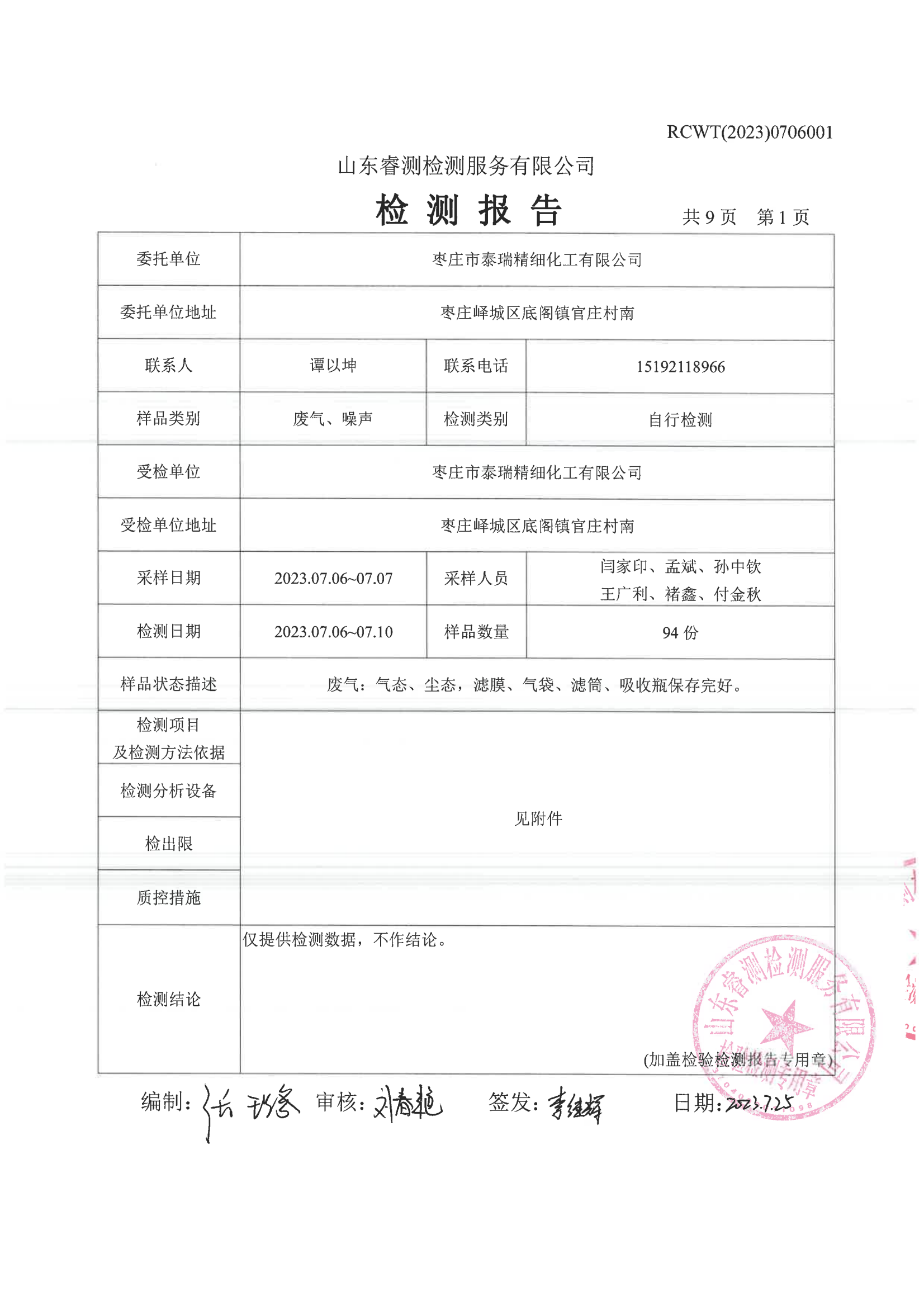 2023年第3季度(7月份)檢測報告