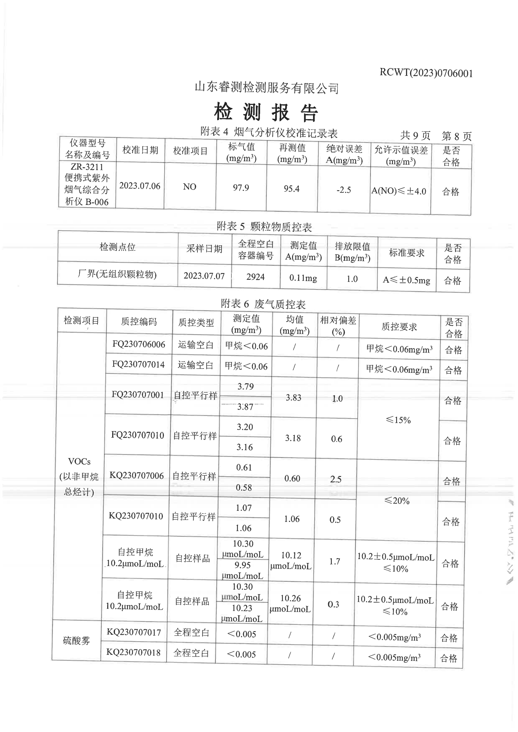 2023年第3季度(8月份)檢測報告