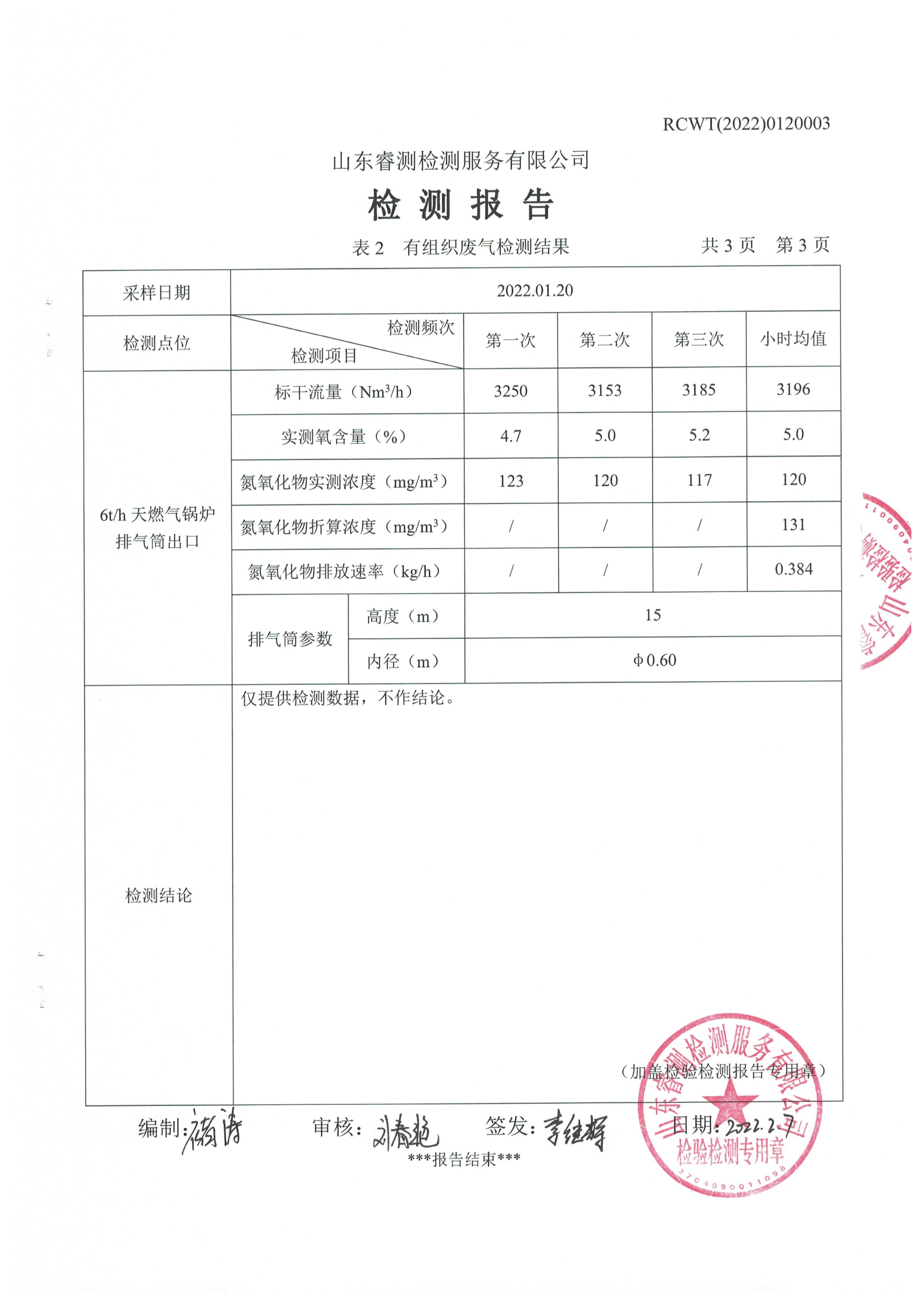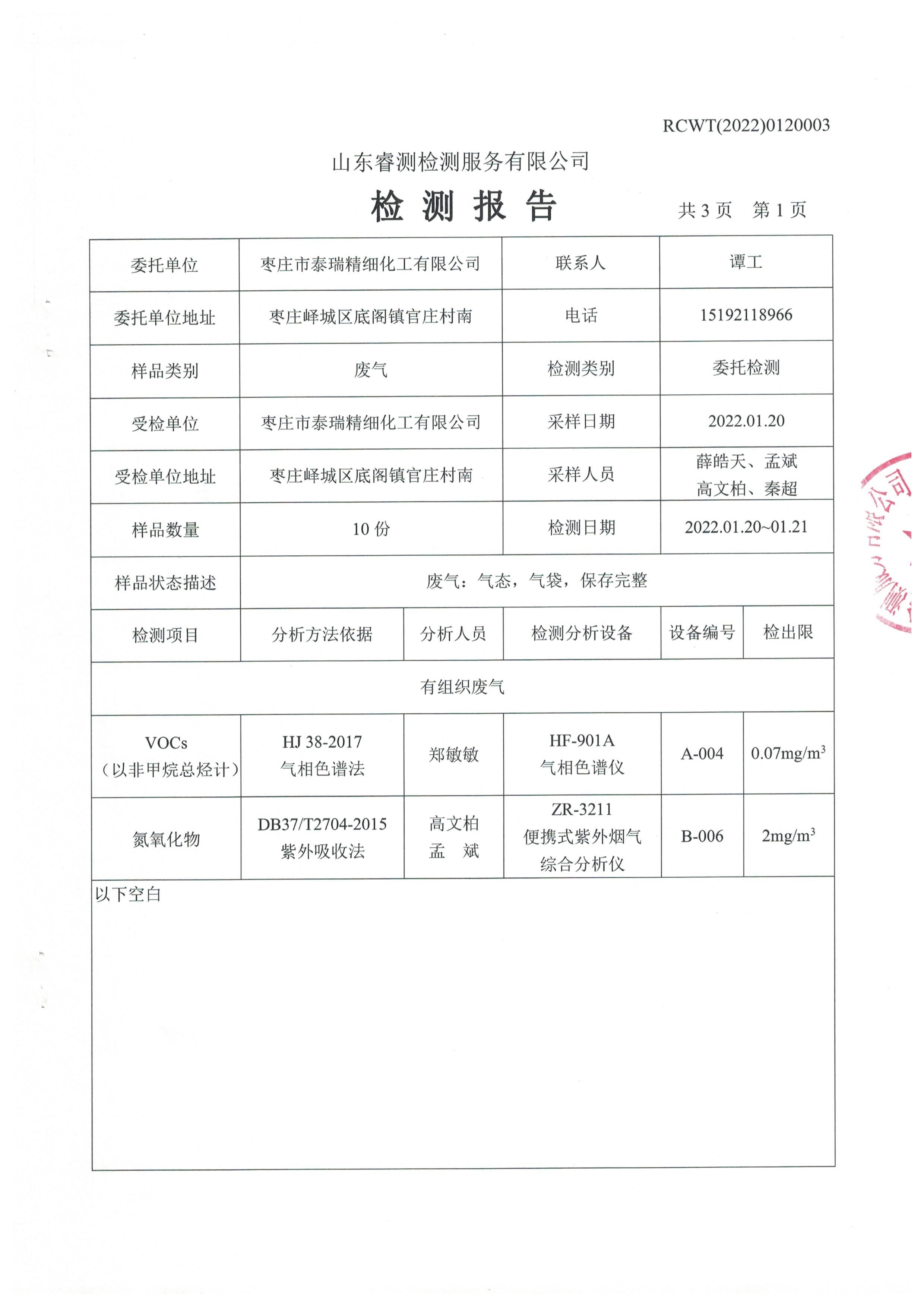 2022年1月份自行檢測報告