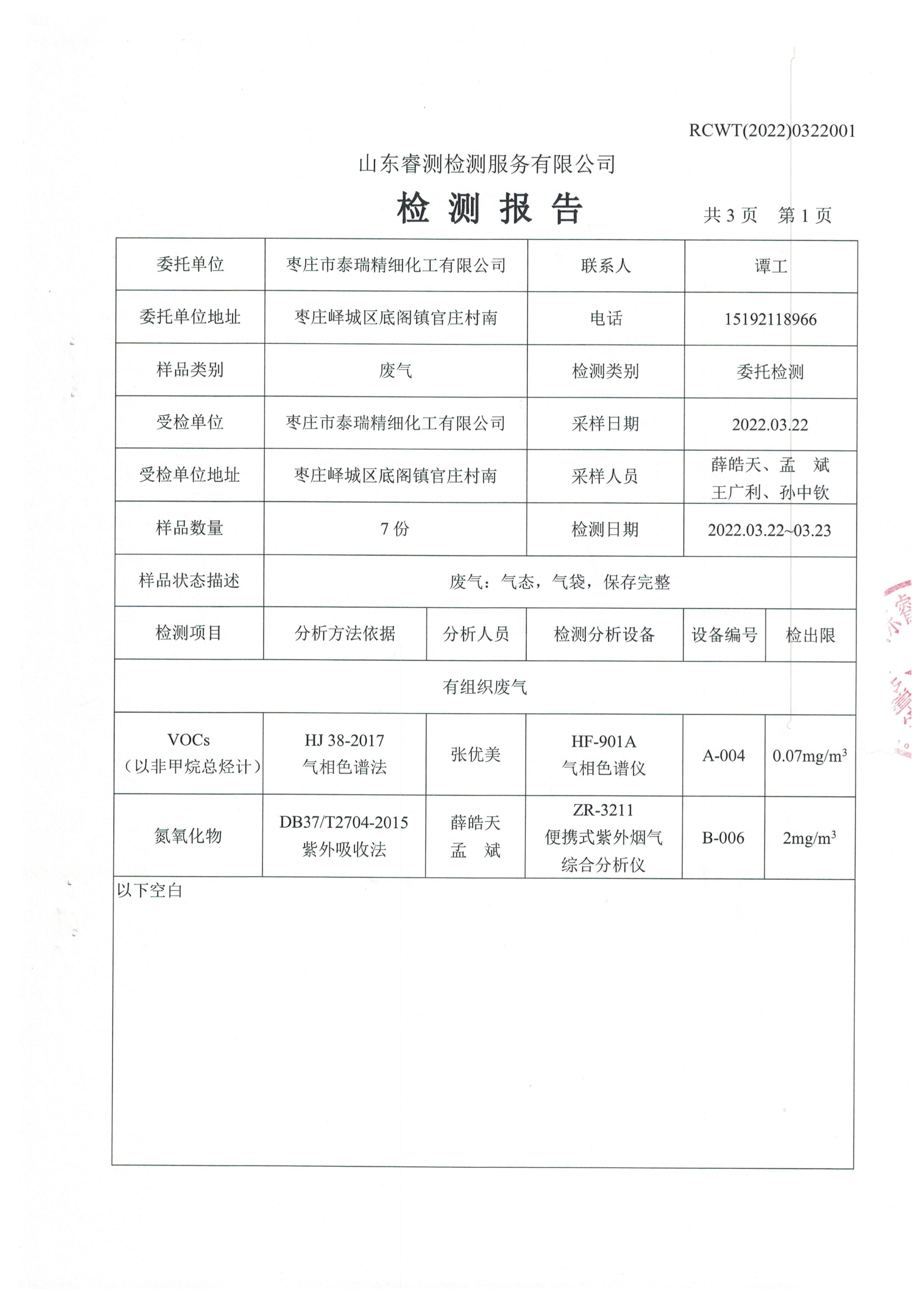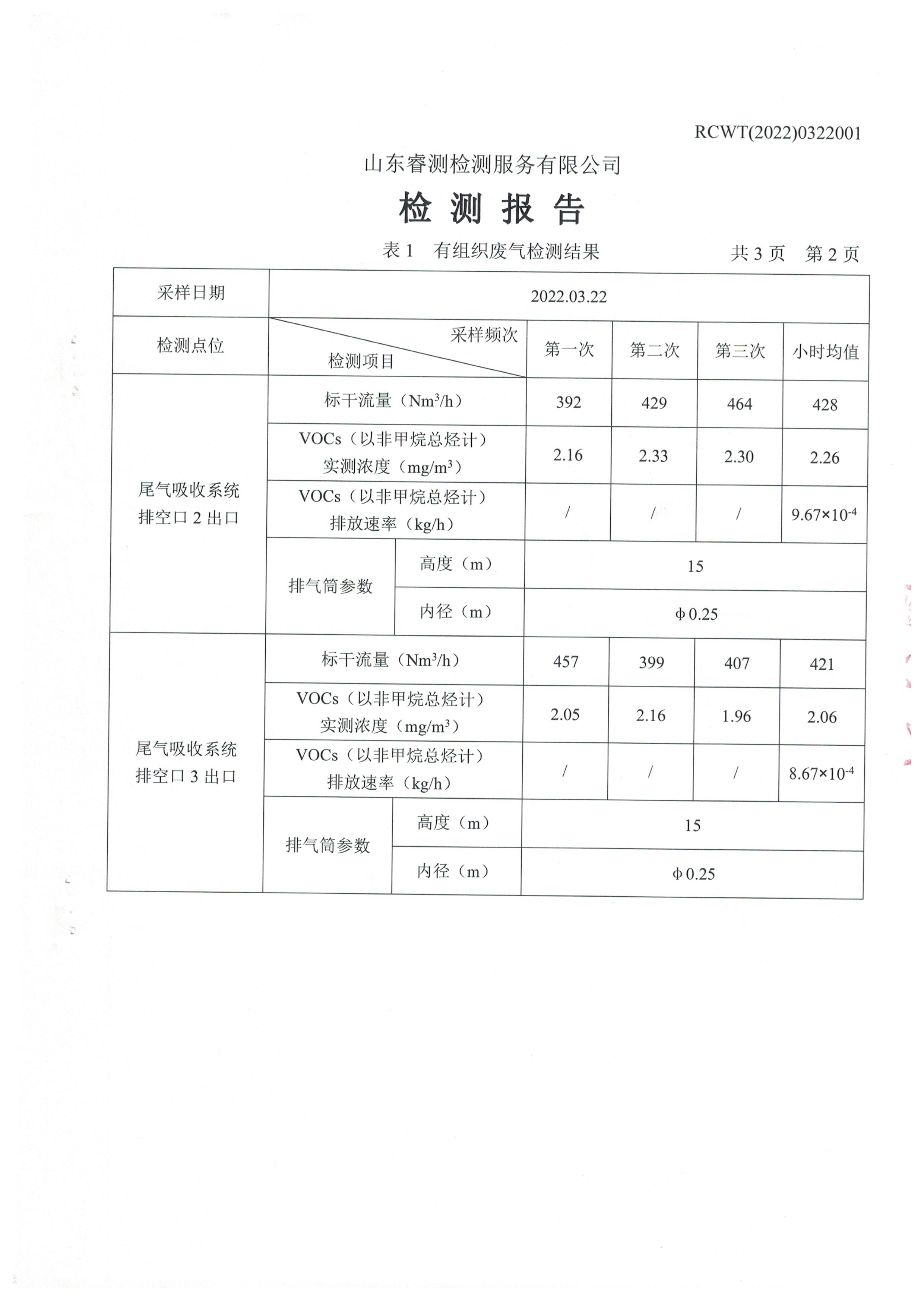 2022年3月份自行檢測(cè)報(bào)告