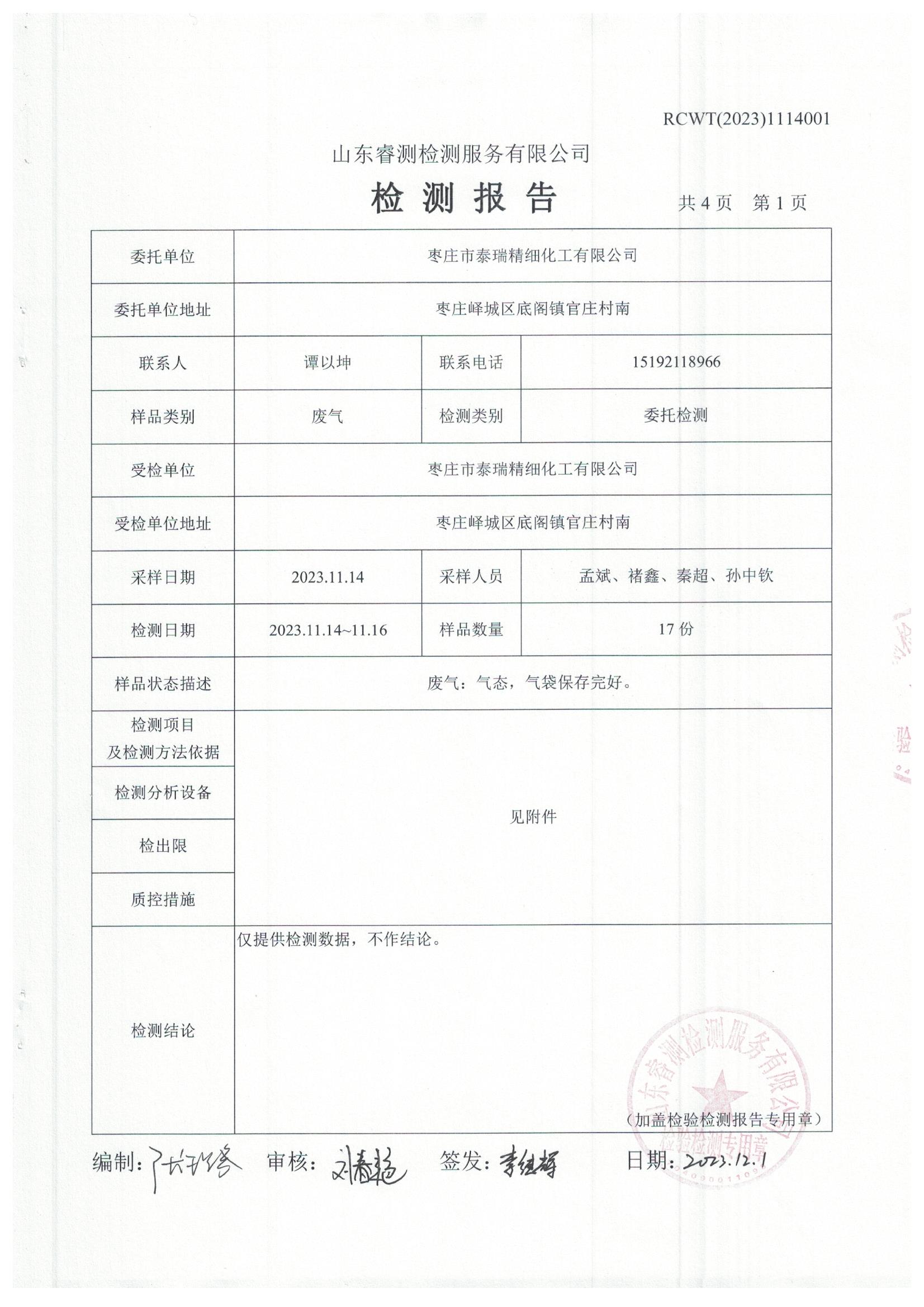 棗莊市泰瑞精細(xì)化工有限公司官網(wǎng)