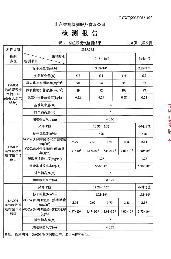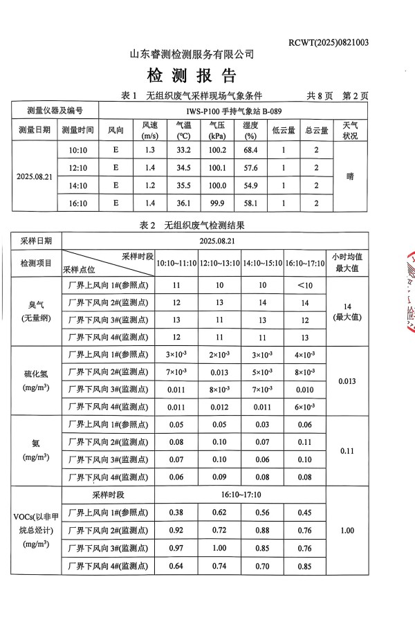 2025年8月廢氣、噪聲檢測報(bào)告